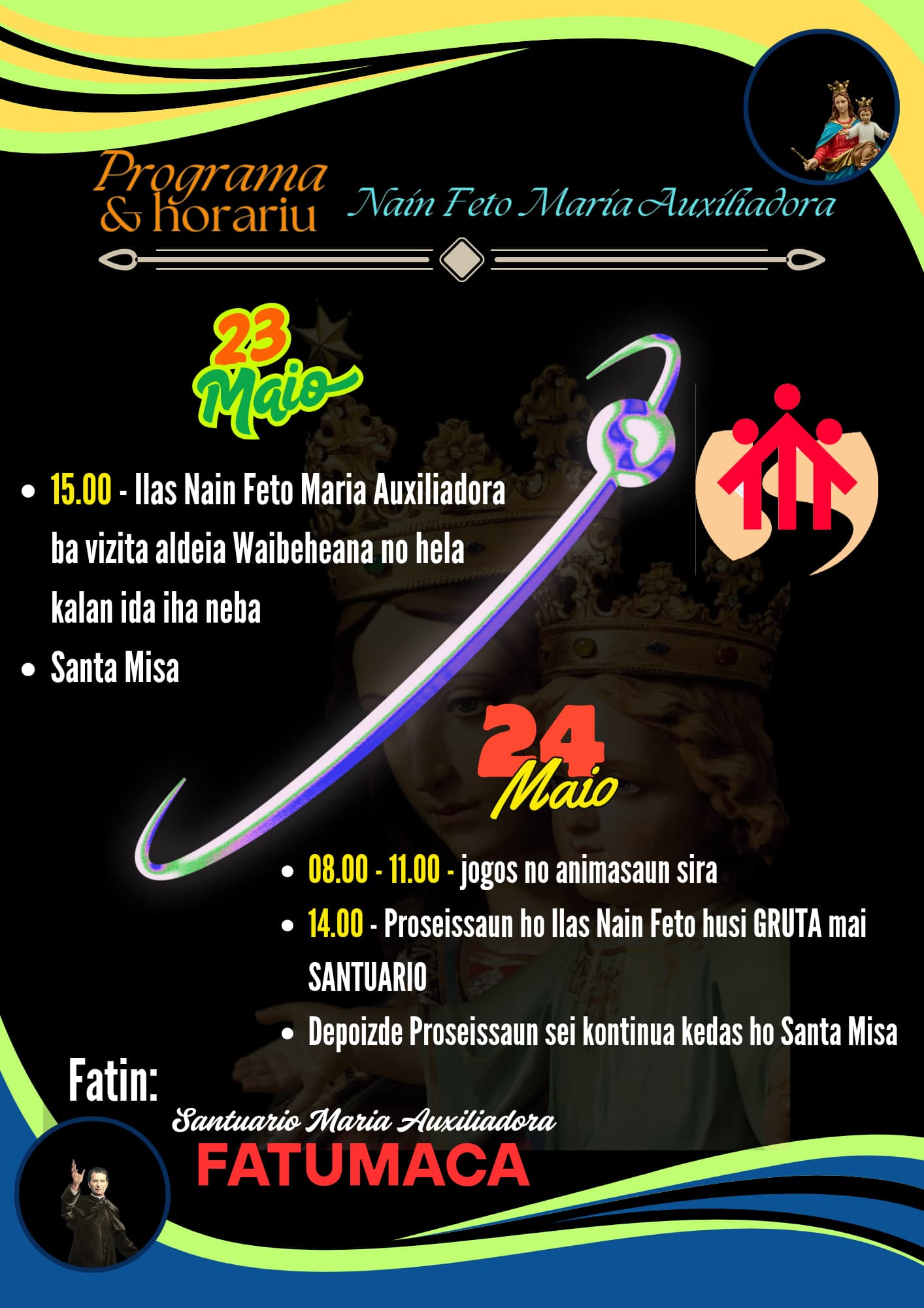 Programa ba Solenidade Nossa Senhora Maria Auxiliadora iha Santuario Nossa Senhora Maria Auxiliadora Fatumaca:
